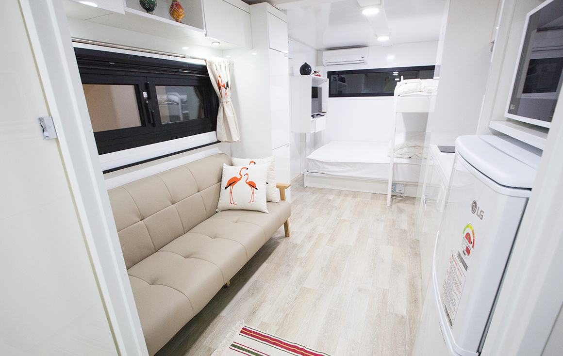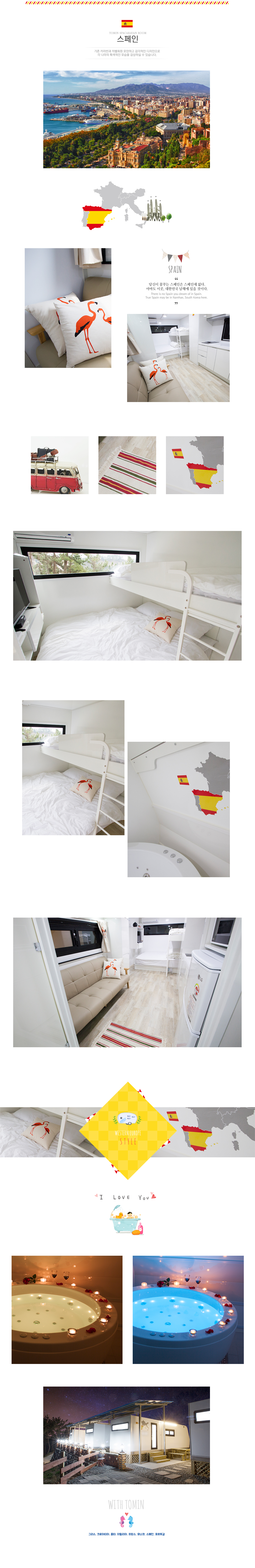 [비품] 실내스파, 스마트TV, 킹사이즈 침대(2층 침대 포함), 소파, 냉장고, 전자레인지, 인덕션, 드라이기, 전기포트, 취사도구, 커튼, 쿠션,