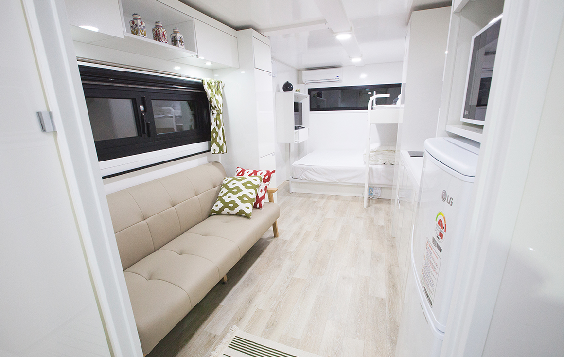 [비품] 실내스파, 스마트TV, 킹사이즈 침대(2층 침대 포함), 소파, 냉장고, 전자레인지, 인덕션, 드라이기, 전기포트, 취사도구, 커튼, 쿠션,